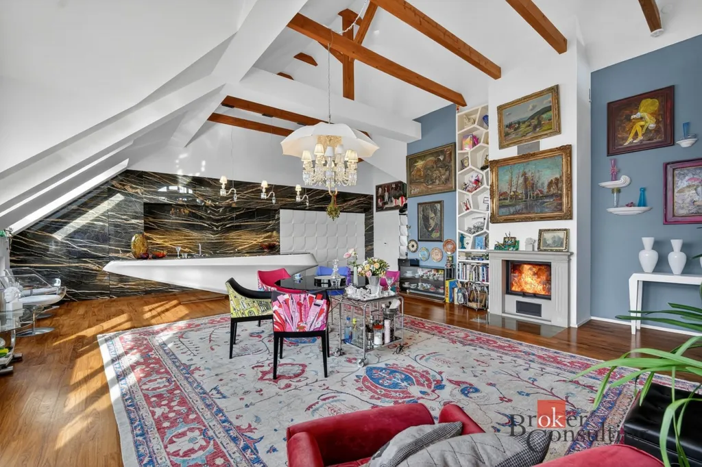 Celý byt je proveden ve vysokém standardu – podlahy z exotického dřeva, kvalitní designové materiály a precizní řemeslné zpracování vytvářejí nadčasový a elegantní prostor.
