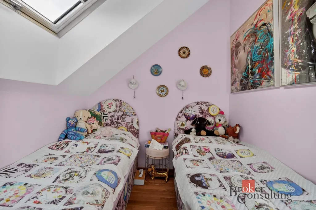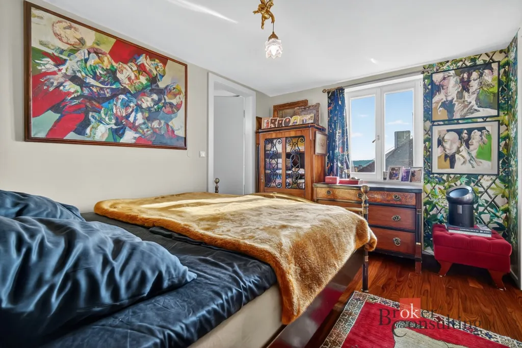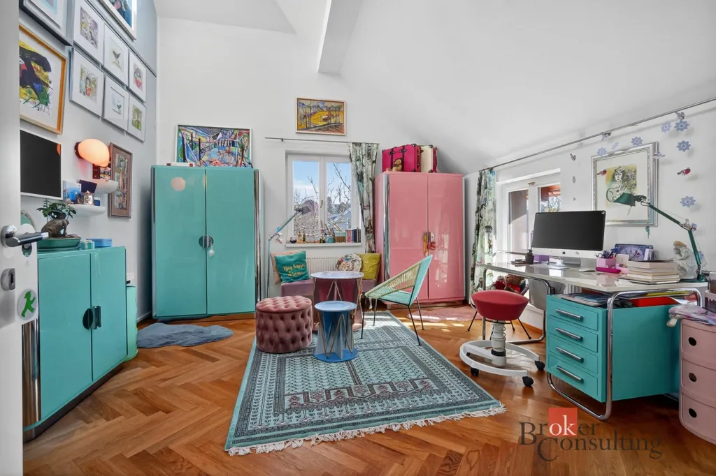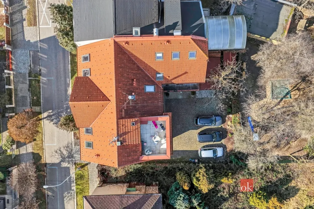 Byt zabírá celé horní patro a podkroví elegantní vily, což přináší nejen dostatek soukromí, ale také atmosféru bydlení, která se blíží rodinnému domu.