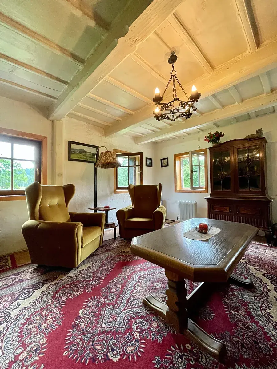 Tato chalupa si zachovala autentický venkovský charakter – původní trámové stropy, dřevěné prvky a prostornou stodolu. Místo má silný genius loci a nabízí klid, který dnes jen těžko najdete.