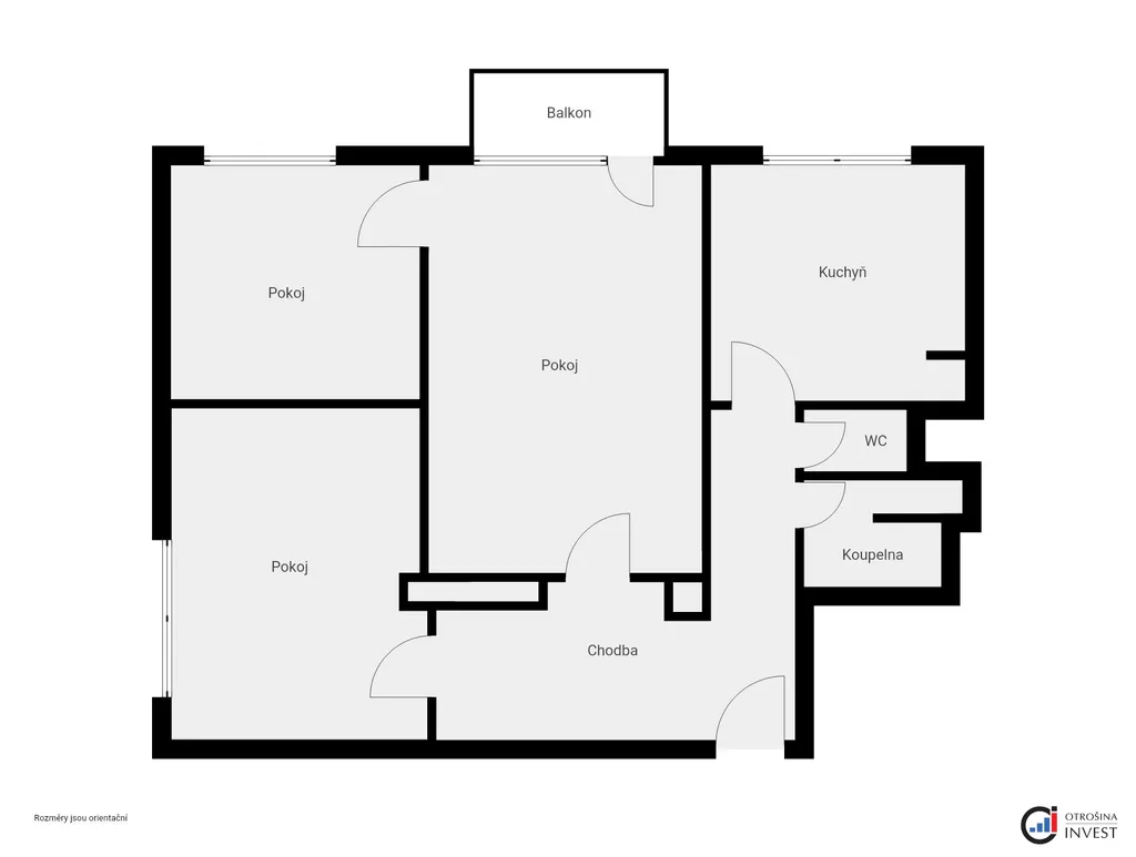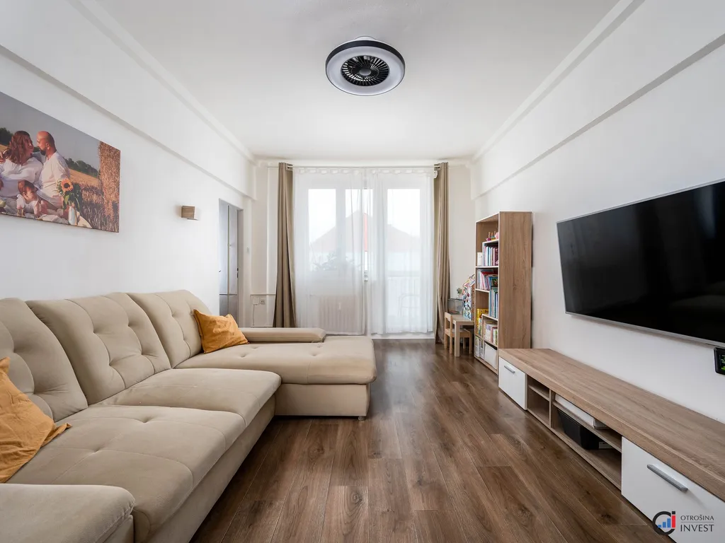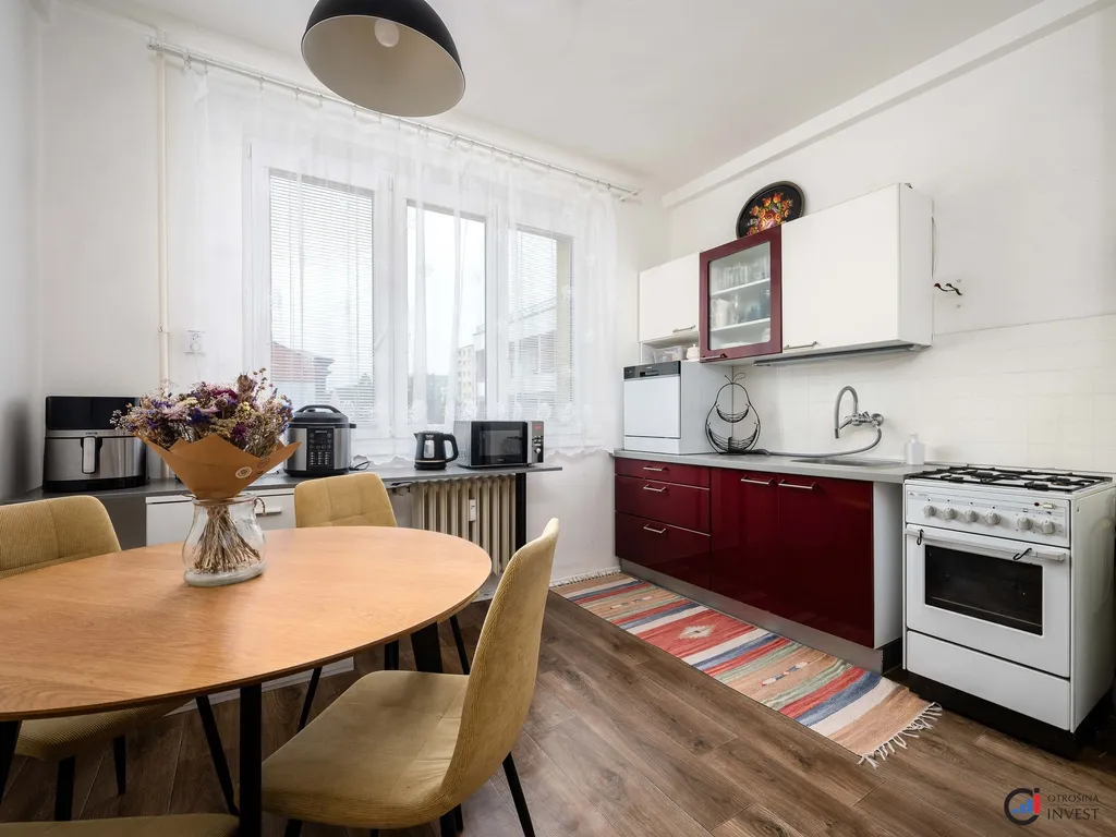 Dispozice bytu je velmi praktická a poskytuje dostatek prostoru pro rodinné bydlení i pohodlné soužití vícečlenné domácnosti. Sestává ze vstupní chodby, koupelny, samostatného WC, kuchyně, dvou samostatných pokojů a jednoho průchozího pokoje se vstupem na balkón. K bytu náleží dva sklepy, které zajistí dostatek úložného prostoru.