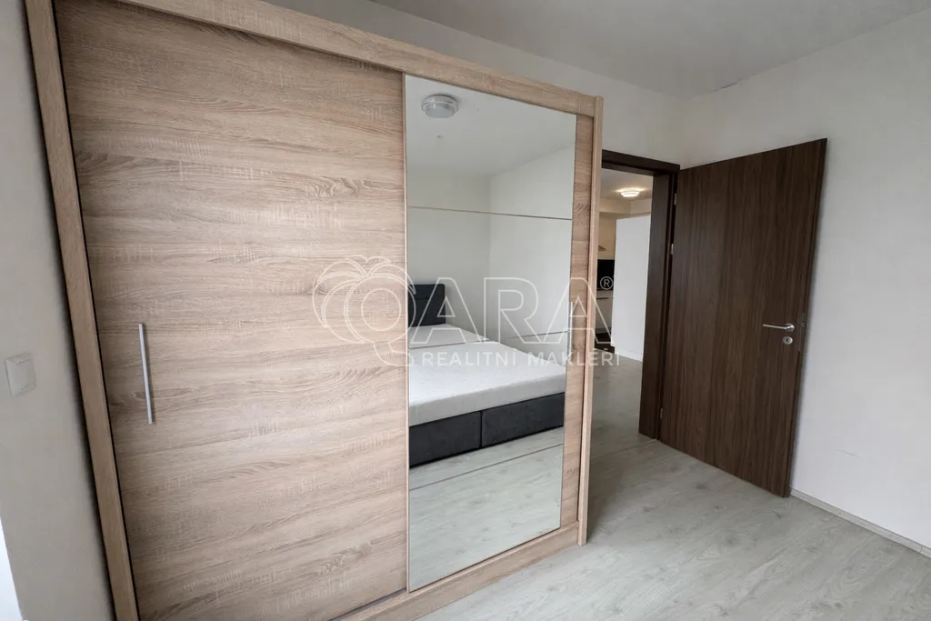 Plně zařízený byt 2+kk o celkové ploše 53m², s balkónem (5m²), sklepem (2m²) , garážovým stáním a komorou v bytě. Byt se nachází ve 2. podlaží 6 let staré nízkoenergetické budovy v Praze 5 (projekt Jižní výhledy). Byt je vybaven nábytkem, kuchyňskou linkou se sklokeramickou varnou deskou, digestoří, myčkou, multifunkční troubou a chladničkou s mrazákem. Dřevěné podlahy a dlažba. V komoře je pračka, v koupelně sprchový kout, toaleta a umyvadlo. V domě je k dispozici internet a kabelová TV (není zahrnuto v ceně).
