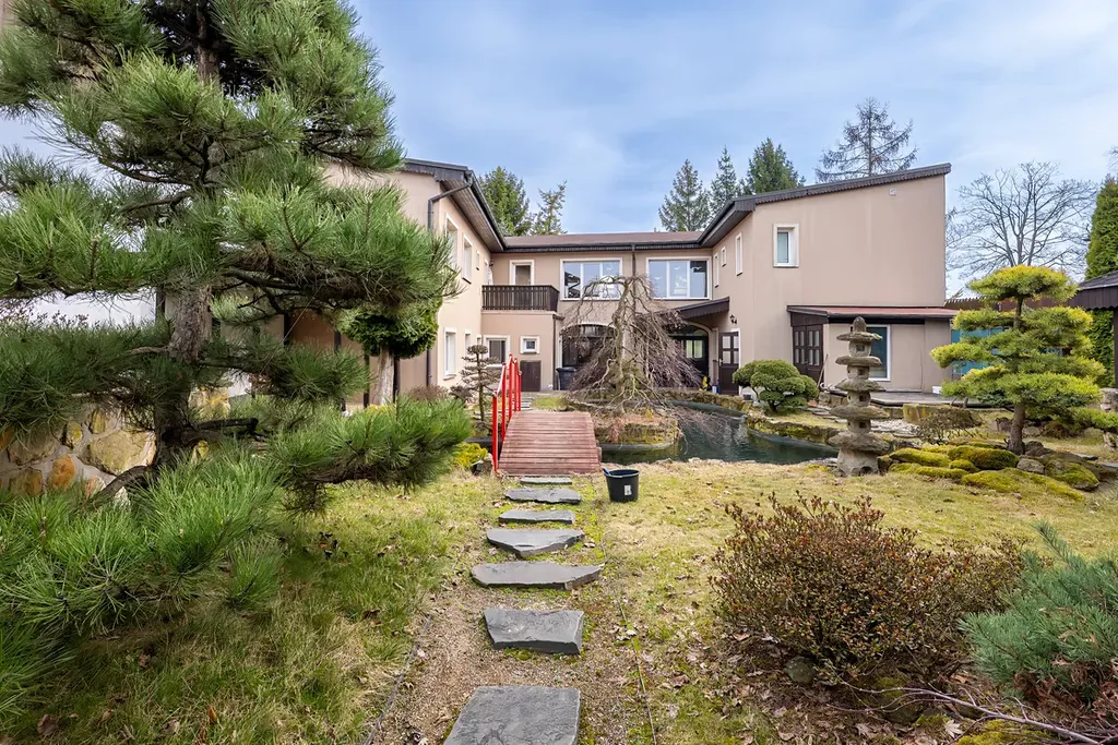 Zahrada v pojetí feng-shui nabízí prostor pro relaxaci a odpočinek. Nalezneme zde zastřešené sezení, ohniště, dřevník a studnu. Dominantu zahrady tvoří jezírko s celoroční filtrací pro okrasné japonské ryby kapr koi.