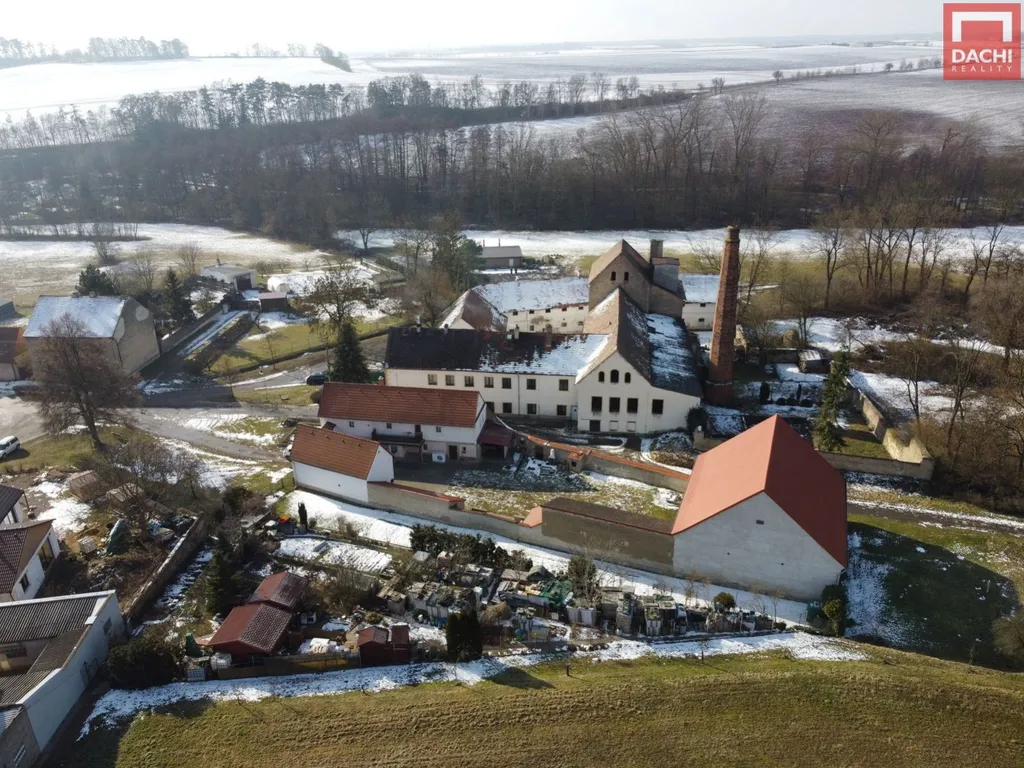 Nabízíme k prodeji rozsáhlý historický areál bývalého parního mlýna v obci Královice u Zlonic, vzdálené přibližně 30 km od Prahy, s velmi dobrou dostupností na dálnice D7 a D8.