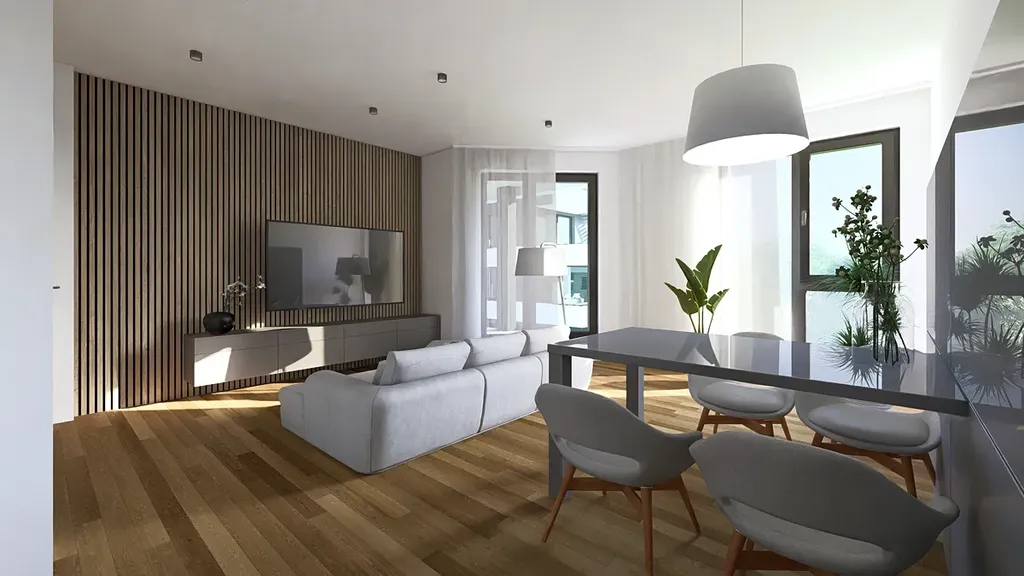 Cena bytové jednotky zahrnuje vysoký volitelný standard (kvalitní vinylové podlahy, zařizovací prvky koupelen Villeroy & Boch, Grohe, velkoformátové obklady a dlažba, plné laminátové CPL dveře a další).