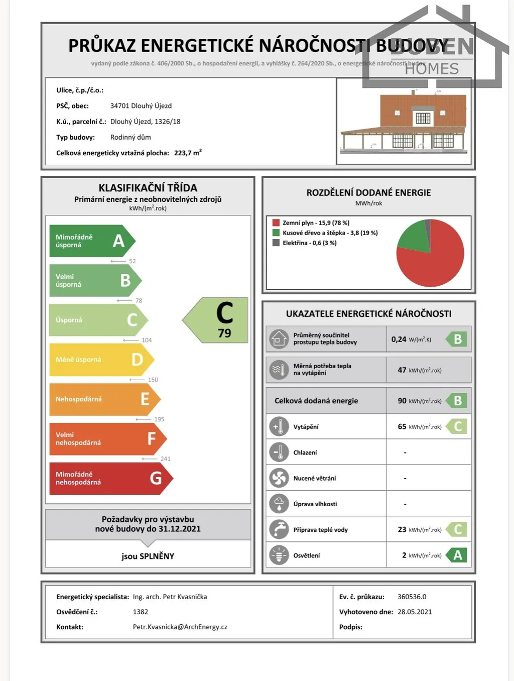 | Ukazatel energetické náročnosti | 79 kWh/m2 za rok |