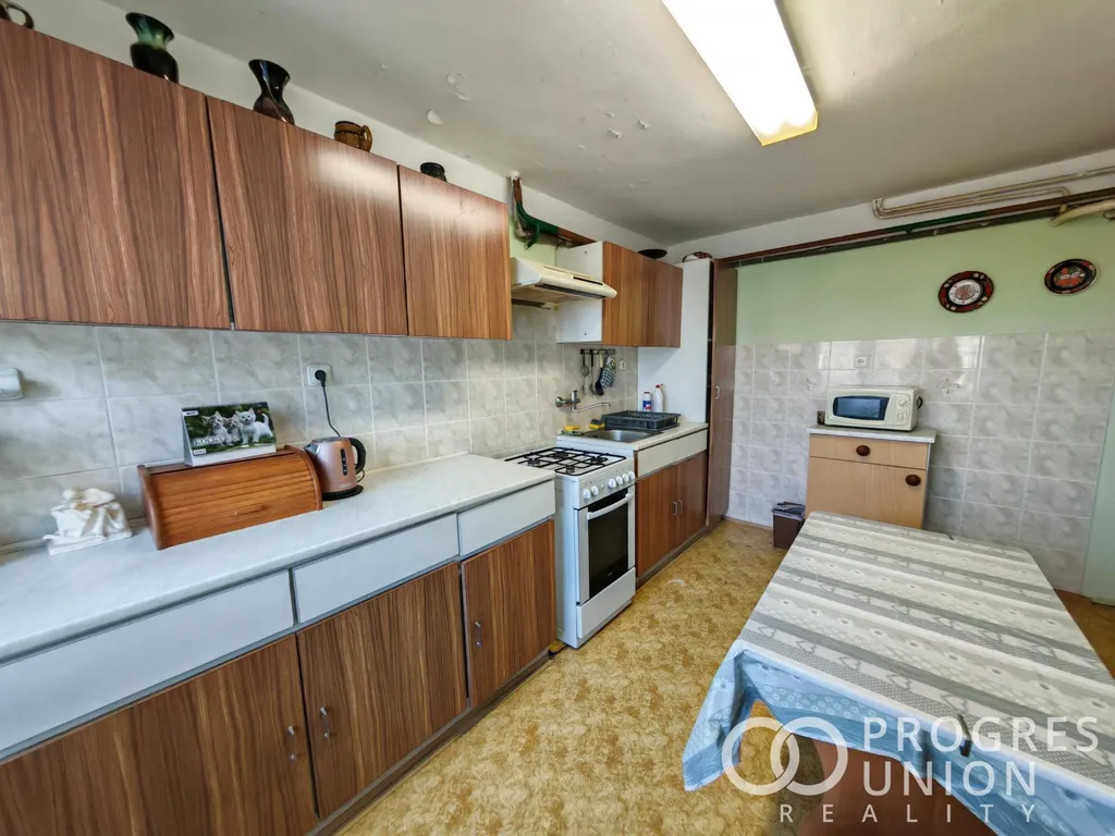 Prodej rodinného domu 4+1 s prodejním prostorem, garáží a zahradou v místní části Kroměříže - Barbořina. Jedná se o rodinný dům s možností využití k podnikatelské činnosti - obchodu nebo služeb v místnosti 20m2 se samostatným vstupem z ulice. Na druhý vchod navazuje předsíň, chodba propojující prostornou kuchyň s jídelním koutem, technickou místnost, prádelnu a schodiště do patra kde je obývací pokoj, ložnice, další pokoj, menší kuchyň(pracovna), koupelna a WC. Vytápění je ústředním topením s plynovým kotlem. K nemovitosti náleží dále garáž s příjezdem z ulice a v zadní částí pozemek vybavený podsklepeným skladem s přístavkem pro chov drůbeže, kůlna na nářadí a zahrada se skleníkem osázená ovocnými stromky. Dům v oblíbené lokalitě se nabízí i jako dispoziční koncept k přestavbě na dvougenerační bydlení. Vzdálenost 1km od nájezdu na dálnici Brno-Zlín-Olomouc.