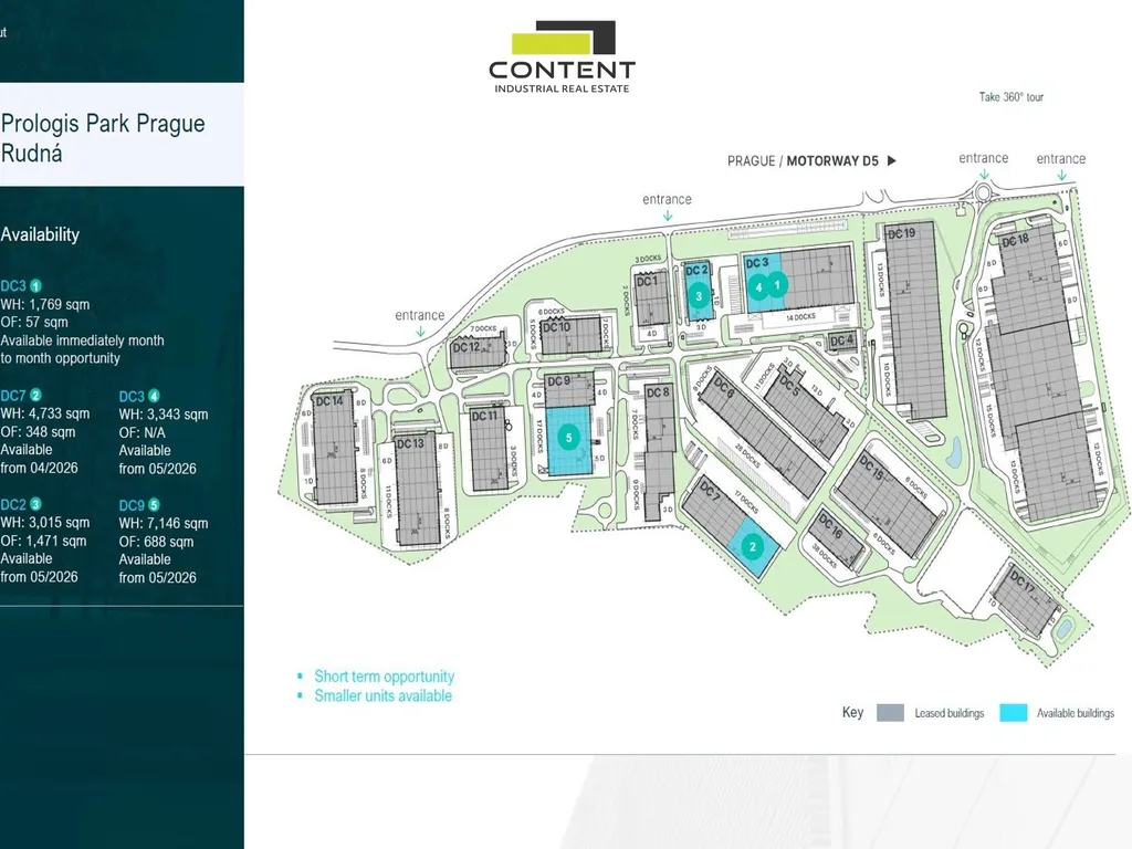 - jednotka o výměře 3015 m² v skladové budově třídy "A",