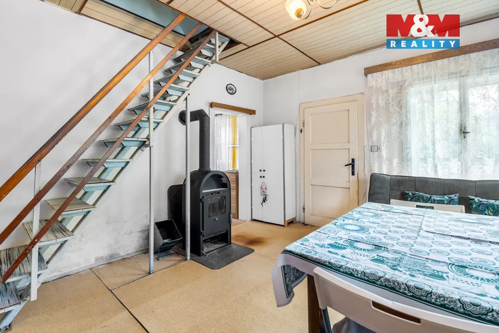 V malebné obci Čtveřín, části Doubí, nabízíme zděnou chalupu se zastavěnou plochou 36 m² a užitnou cca 50 m² na pozemku 432 m². Přízemí prošlo rekonstrukcí v roce 2012 (kuchyň, koupelna, obývací pokoj), v podkroví jsou dva světlé pokoje s balkonem a krásným výhledem do zeleně. Součástí je terasa, elektřina 230/400 V, voda z obecního vodovodu, topení krbovými kamny a žumpa. Pozemek je řešen terasovitě, přímo u chaty je prostor pro venkovní posezení i vybudování vlastního parkování, takže auto zaparkujete pohodlně na vlastním. Příjezd vede po obecní slepé cestě, což zaručuje naprostý klid a soukromí bez provozu. Pozemek je v ploše BV – bydlení v rodinných domech. Díky stávající stavbě a historickému vymezení je možné rozšíření nebo výstavba nové stavby i pod obvyklou hranicí 800 m², což celý proces povolování zjednodušuje (výňatek z územního plánu je mezi fotografiemi). Klidná lokalita s výbornou dostupností R35, vlakem i busem, v blízkosti Český ráj, koupaliště a zámek Sychrov.