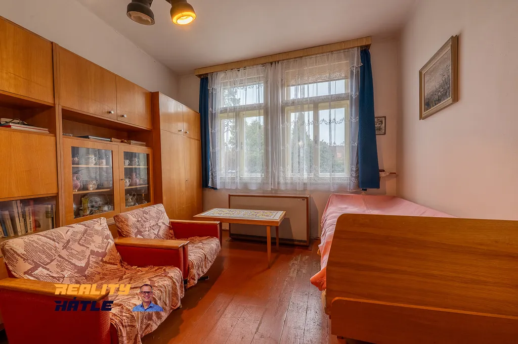 V domě se nachází vstupní chodba, ze které je přístup na půdu, do sklepa, na zahradu i do kuchyně. Dispozice, tvořená pouze dvěma obytnými místnostmi, činí nemovitost vhodnou spíše pro jednu až dvě osoby. Na ložnici navazuje koupelna a dílna. Na zahradě je k dispozici také kolna. Nad obytnou částí se nachází rozsáhlá půda o výměře cca 60 m², přičemž možnost jejího případného využití k vestavbě doporučuji konzultovat s odborníkem ze stavebnictví.