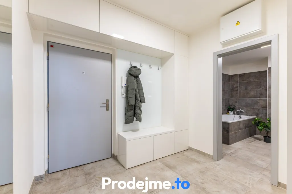 Byt je částečně vybaven – k dispozici je kuchyňská linka na míru včetně spotřebičů a vestavěná skříň v chodbě. Ostatní vybavení si nájemce může zařídit podle vlastních představ. Vše ostatní je nachystané a navíc téměř nové – byt byl obývaný jen krátkou dobu. Jako příjemný bonus máte obchod hned vedle domu a centrum Znojma do 1 kilometru.