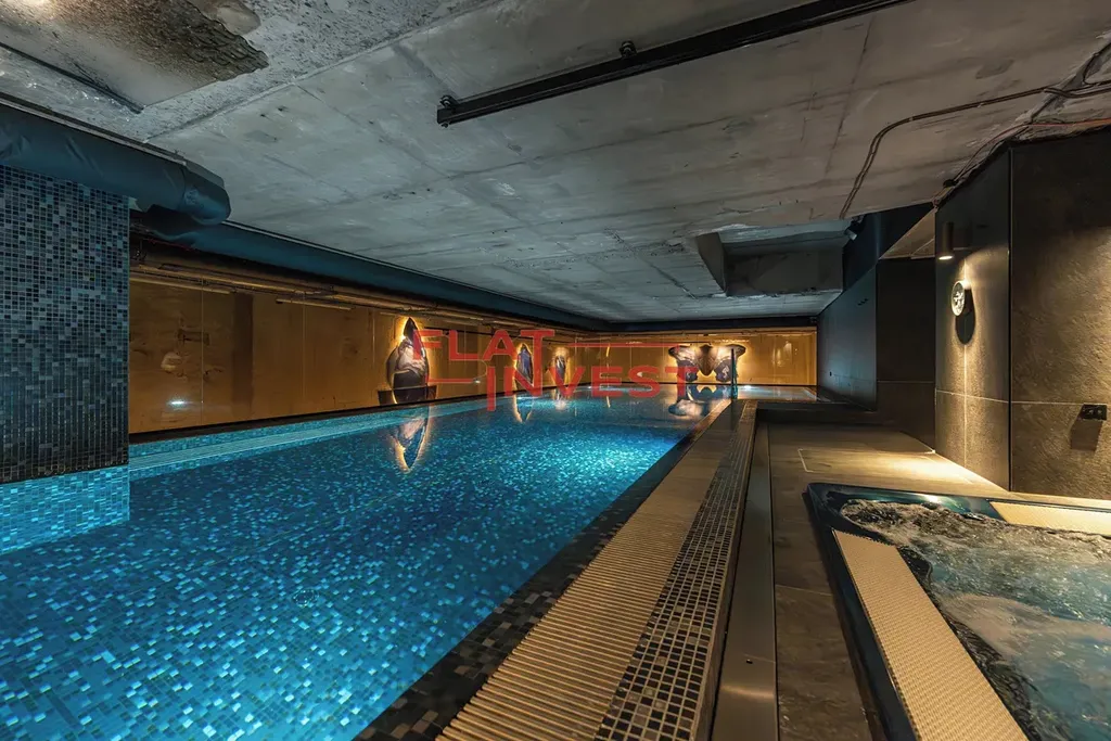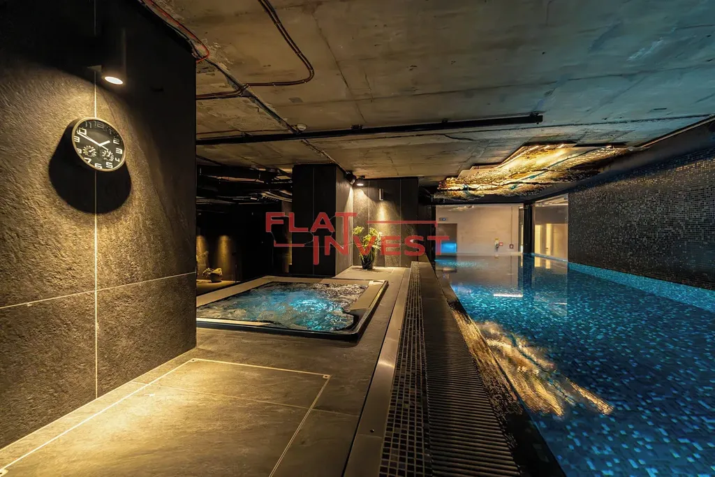 Soukromé wellness: Plně vybavená zóna s bazénem, saunou a vířivkou přístupná přímo v domě.