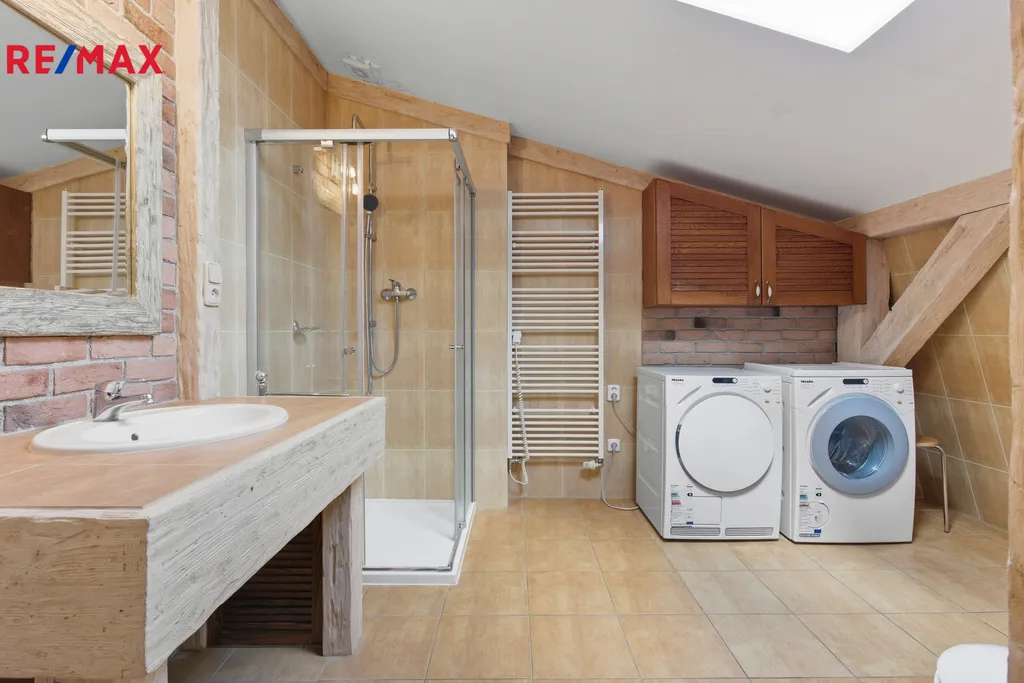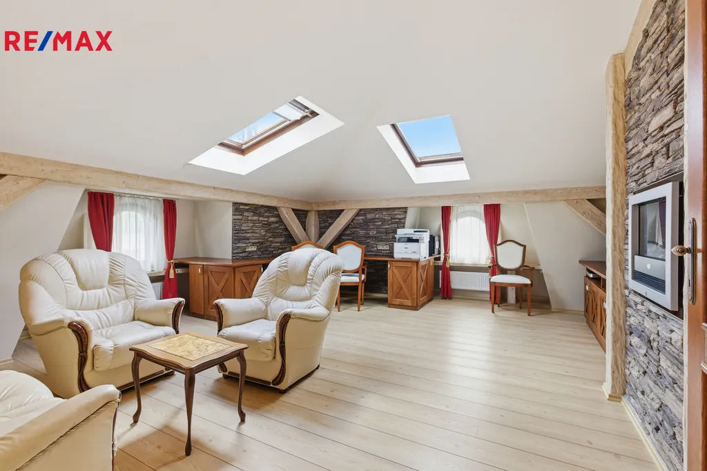 K dispozici je dále několik samostatných místností vhodných jako kanceláře, zasedací místnosti či manažerské pracovny. Praktickou výhodou jsou dvě koupelny se sprchovým koutem, šatna, komora a prostorná chodba s dostatkem úložných možností.