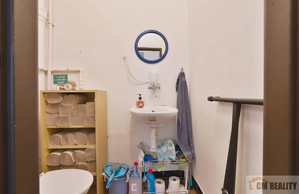 Z chodby je vstup do kuchyně, samostatného WC a hlavní místnosti. Na hlavní místnost navazuje koupelna se sprchovým koutem a dvěma toaletami.