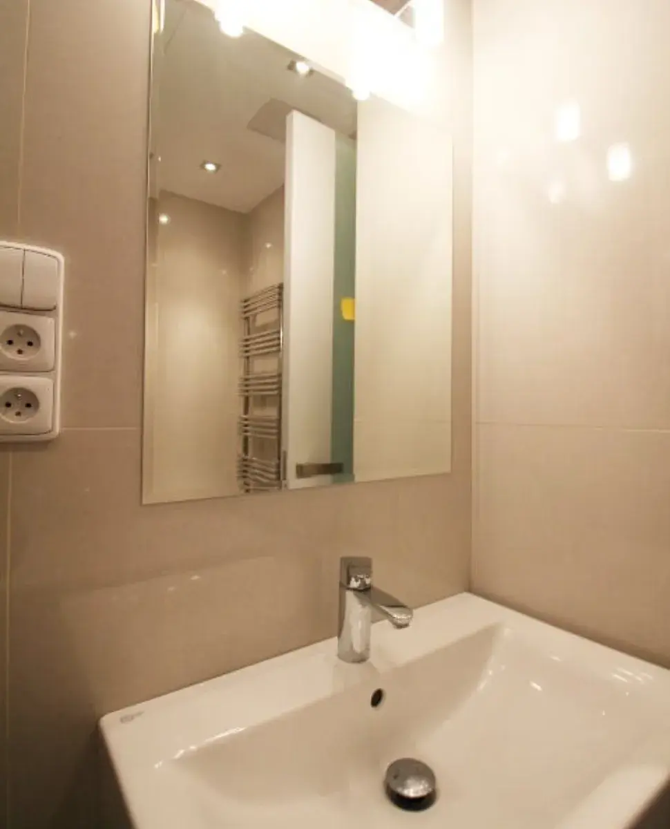 Dominantou bytu je elegantní francouzské okno, které zajišťuje dostatek denního světla a příjemnou atmosféru po celý den. Interiér je navržen s důrazem na kvalitu a detail.