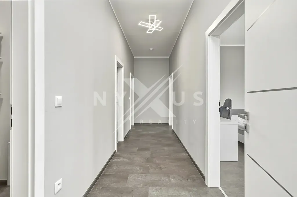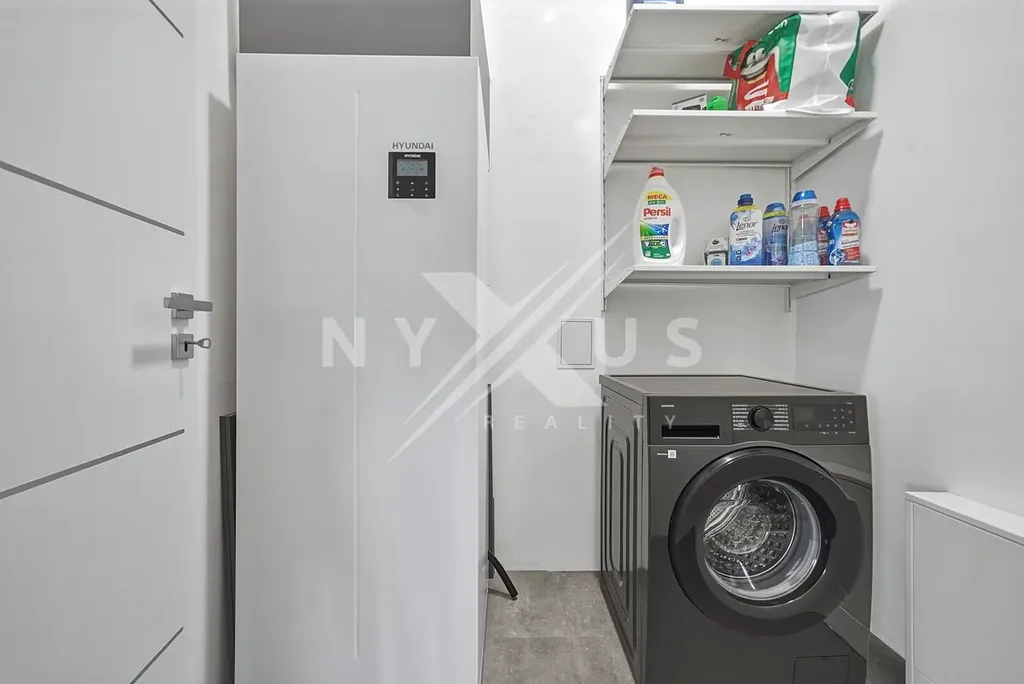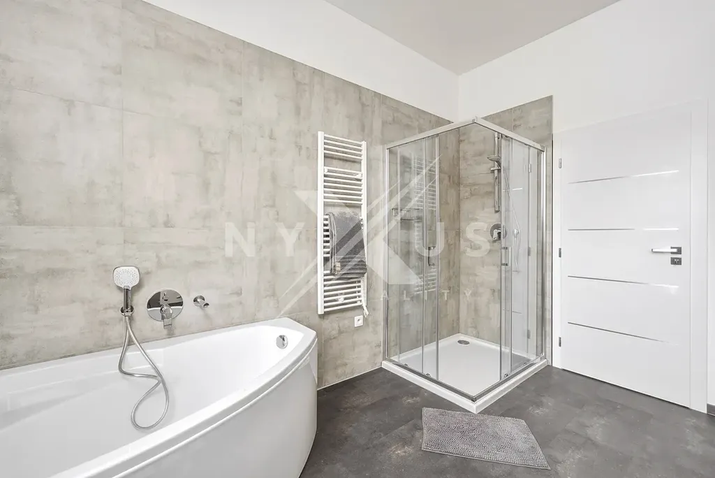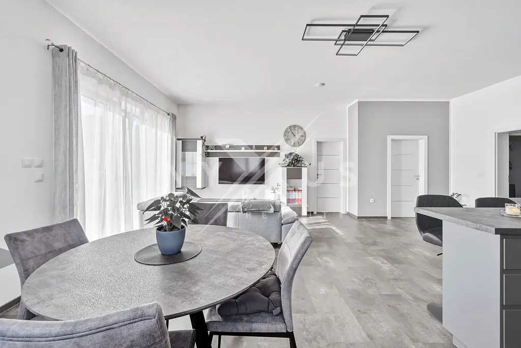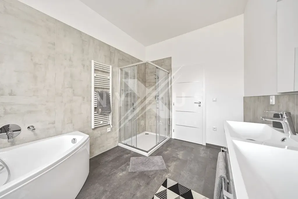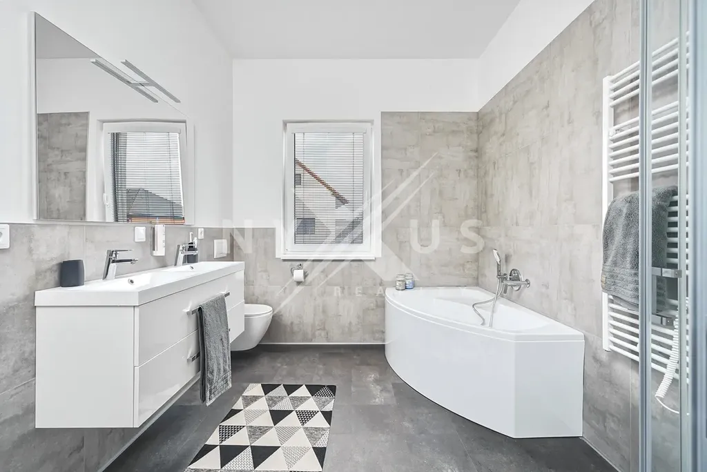 Interiér domu je moderně vybavený a promyšlený do detailu. Velkou výhodou jsou dvě koupelny, které zajišťují větší komfort pro rodinu i návštěvy. Kuchyňská linka je vybavena moderními spotřebiči včetně indukční varné desky. O příjemné teplo v celém domě se stará podlahové vytápění napojené na elektrické tepelné čerpadlo. Ve všech oknech jsou instalovány elektrické vestavěné rolety pro maximální pohodlí a soukromí.