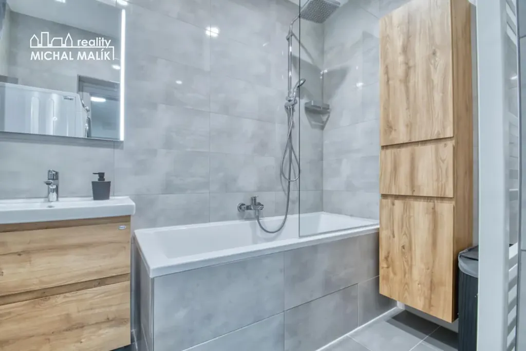 Byt prošel kompletní a velmi kvalitní rekonstrukcí v letech 20232024. V rámci rekonstrukce byla renovována koupelna a samostatné WC, kde byly provedeny nové obklady, dlažba, instalována vana se skleněnou zástěnou, koupelnový nábytek, závěsné WC a koupelnový žebřík. V kuchyni byly realizovány nové rozvody elektřiny a zároveň byla provedena nová nivelace podlah v kuchyni, koupelně a WC. Ve všech obytných místnostech je položena kvalitní vinylová podlaha Quick Step. Součástí úprav byla také renovace všech interiérových dveří, zárubní a klik včetně úpravy zasunovacích dveří v obývacím pokoji a výměna zásuvek a vypínačů v celém bytě.