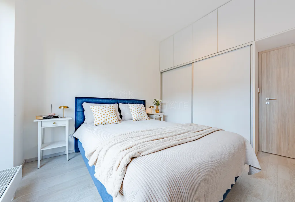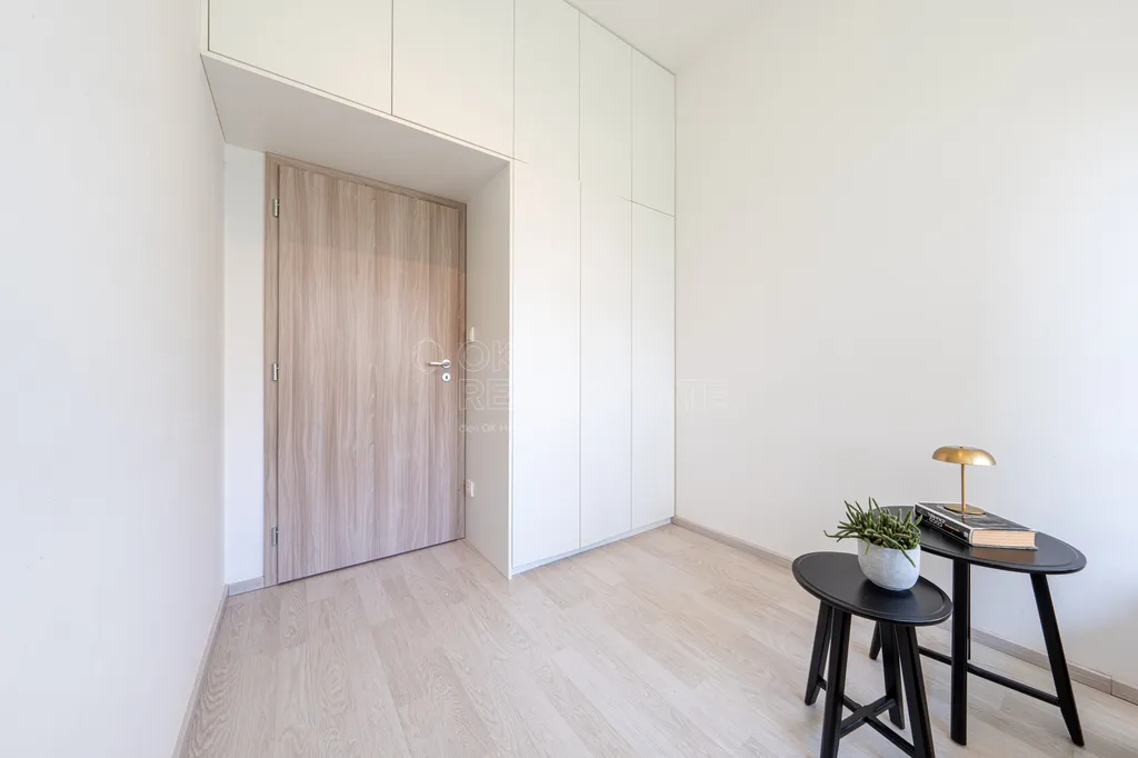 Kuchyňská linka je zhotovena na míru včetně vestavěných spotřebičů. V bytě je dostatek úložných prostor díky vestavěným skříním. Dispozice dále nabízí dvě samostatné ložnice, koupelnu, samostatné WC a praktickou technickou místnost vhodnou pro pračku i sušičku.