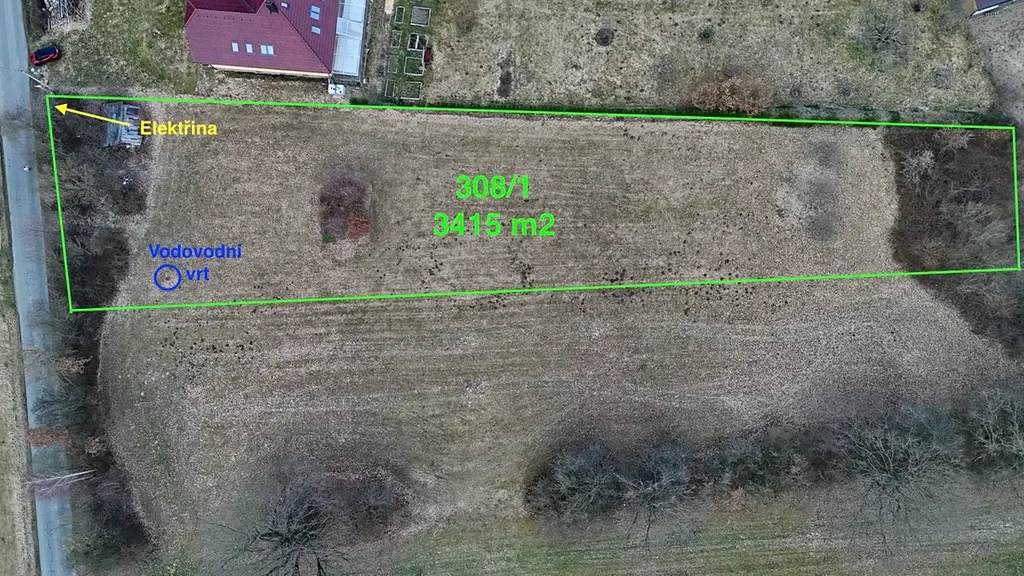 Pozemek je přístupný po obecních pozemcích, což zajišťuje bezproblémový příjezd. Na hranici pozemku je k dispozici přípojka elektrické energie a nachází se zde také vodovodní vrt, což může výrazně usnadnit budoucí výstavbu.