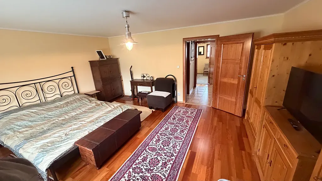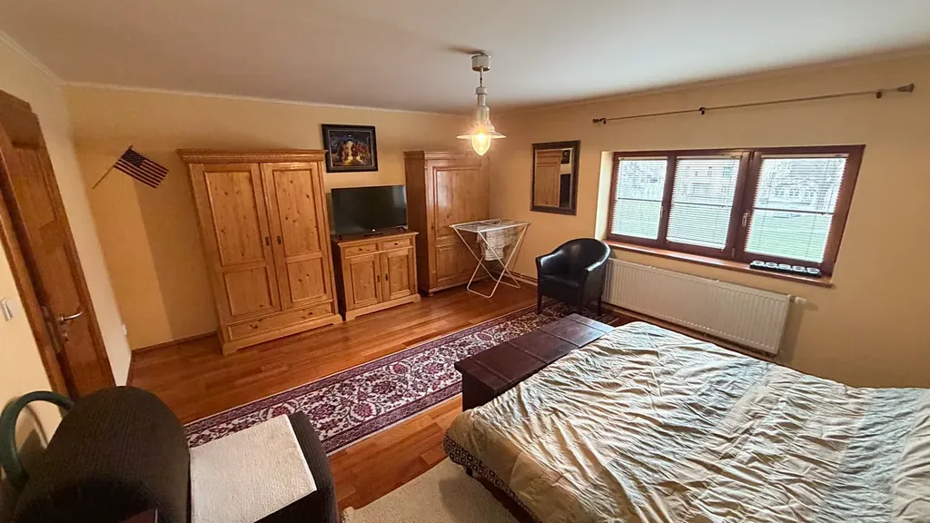 V pokoji se nachází dvou postel, nábytek a televize. Ložnice je vybavena postelí, úložnými prostory, křesly, a televizí.