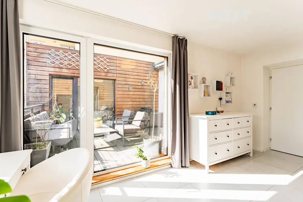 Velkou přidanou hodnotou bytu jsou dvě prostorné terasy, které dodávají bydlení jedinečný charakter. U vstupu do bytu se nachází terasa o velikosti 42 m², která vytváří příjemný a reprezentativní vstup do domova a umocňuje pocit bydlení v rodinném domě. Druhá terasa o velikosti 15,5 m² je přístupná ze tří místností a nabízí dostatek soukromí – ideální místo pro ranní kávu, večerní sklenku vína nebo klidný odpočinek.
