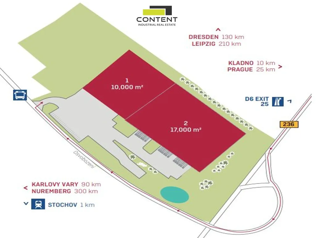 - strategická pozice v logistickém areálu přímo u D6 EXIT 25,