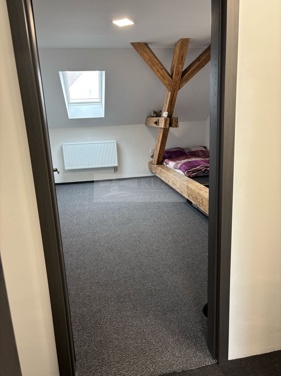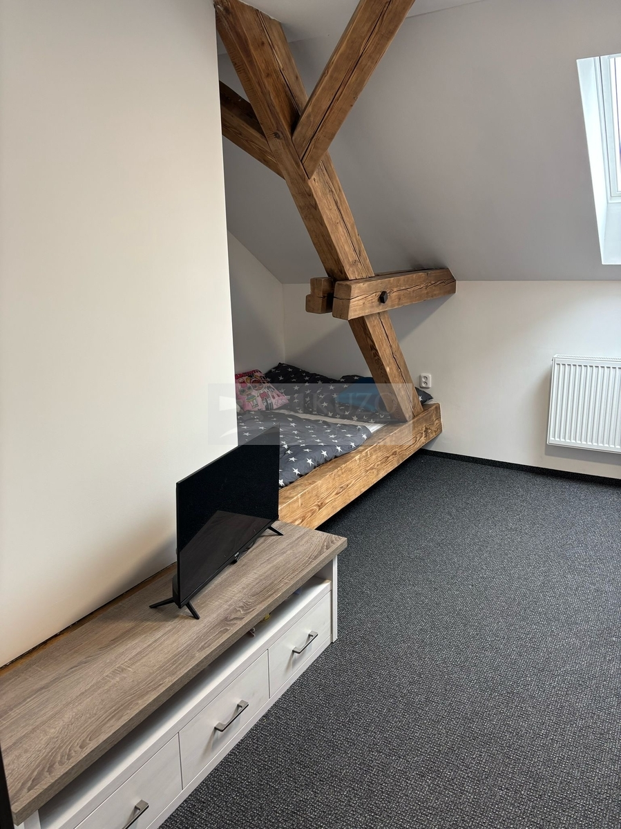 Byt prošel kompletní rekonstrukcí, poslední probíhala koncem loňského roku. Dispozice přízemí: chodba, kuchyně, hlavní místnost, koupelna s WC; podkroví: dvě ložnice, koupelna. Koncem minulého roku proběhla úprava v podkroví, kde vznikly dvě místnosti a koupelna. Střecha je izolována proti úniku tepla foukanou izolací, krytina plechová. Z hlavní místnosti je přístupná terasa a zahrada, do podkroví vede dřevěné schodiště.