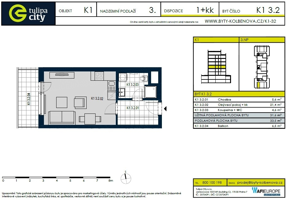 Byt disponuje prostorným balkonem o velikosti 6,5 m², což je ideální místo pro relaxaci nebo pěstování květin. Vnitřní prostor bytu je částečně vybaven, což umožňuje budoucím nájemcům přizpůsobit si ho podle vlastních představ a potřeb.
