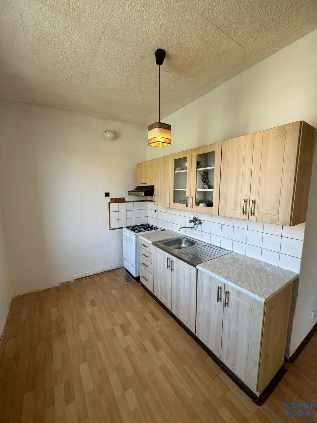 Byt je po částečných úpravách a nabízí se jako částečně vybavený kuchyňskou linkou s plynovým sporákem, elektrickou troubou a přípojkou na pračku; koupelna je s vanou a toaletou zvlášť.