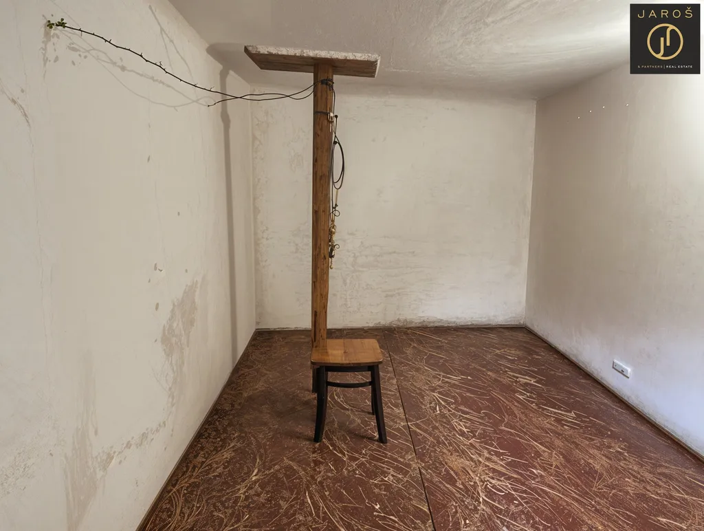 Po několika schodech vstoupíte do hlavní části domu, kde se nachází kuchyně, koupelna, samostatné WC a tři pokoje. Půdní prostor je zároveň prostor pro případné rozšíření obytné plochy.