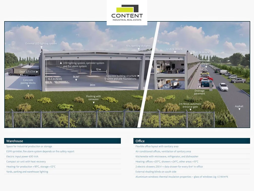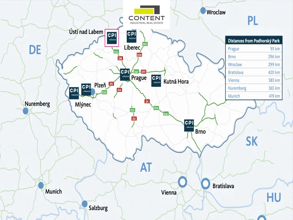 V zastoupení majitele a bez provize nabízíme prostory vhodné pro sklad nebo výrobu, v novém komerčním parku s výborným dopravním napojením na dálnici D8.