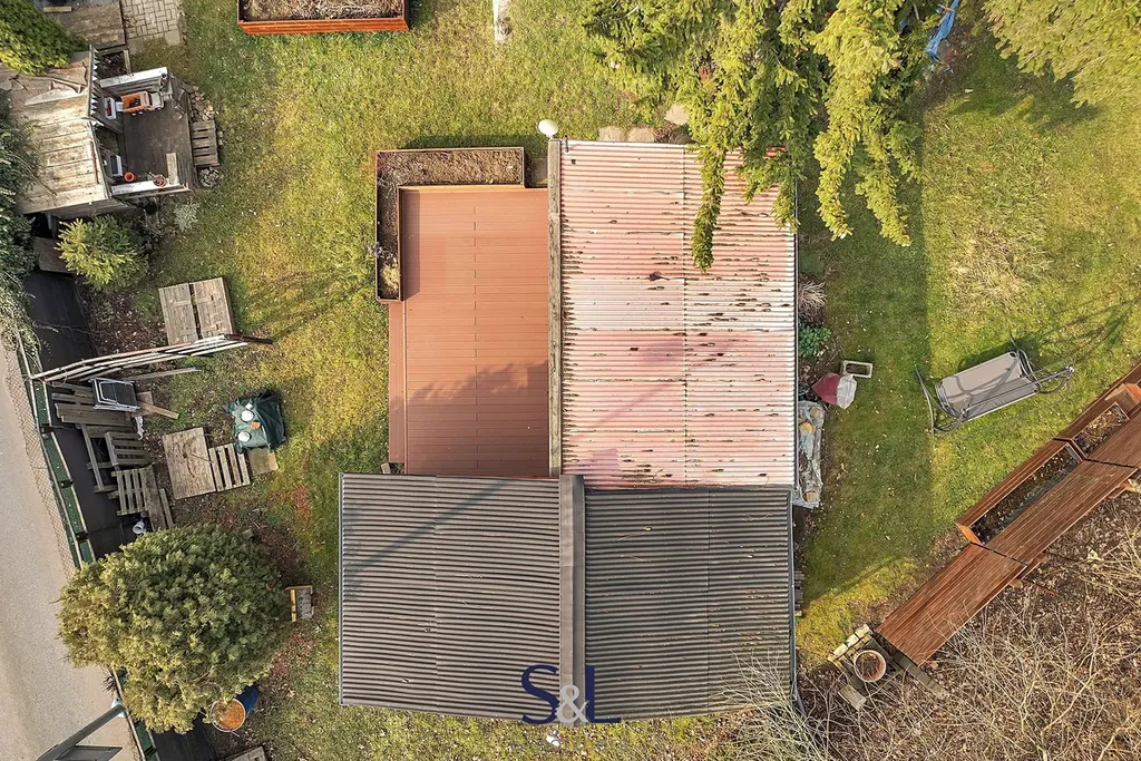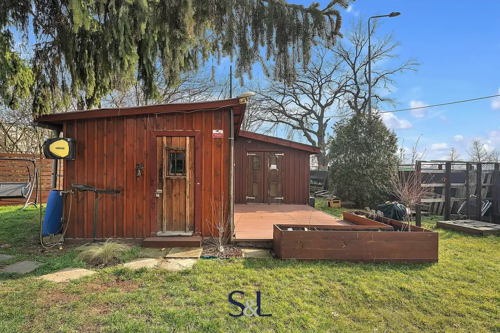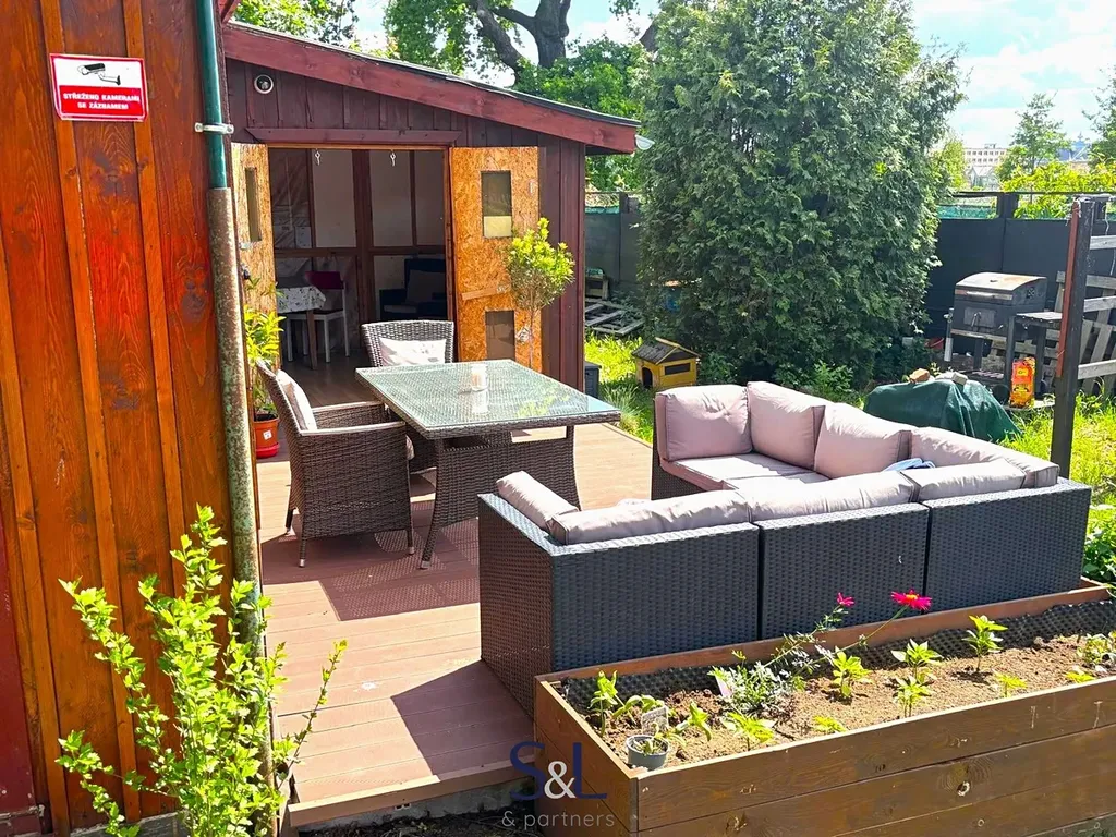 Dále se na zahrádce nachází kůlna na nářadí o velikosti 2,5x2 metrů, vyvýšené záhonky, houpačka, domek pro děti a pískoviště.