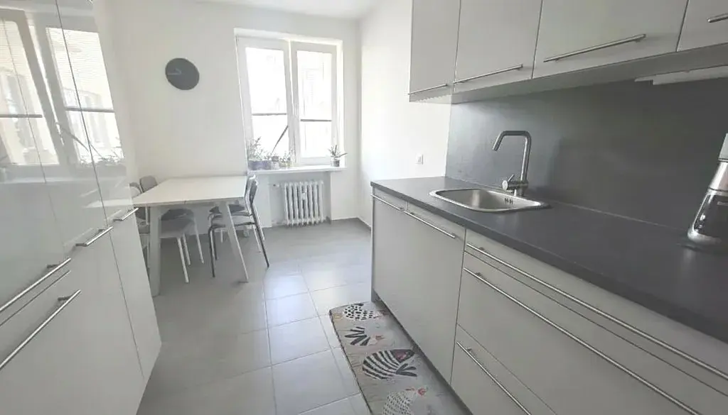 Byt se pronajímá celkově zařízený, kuchyňská linka je vybavená veškerými spotřebiči (indukční varná deska, trouba, mikrovlnná trouba, myčka, lednice s mrazákem), v koupelně je k dispozici i pračka.
