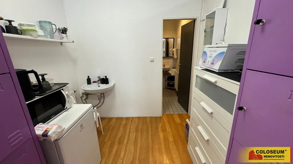 Jedná se o samostatnou obchodní jednotku se vstupem z pasáže, která disponuje vlastním sociálním zázemím v podobě WC a samostatné místnosti s umyvadlem, využitelné jako kuchyňka. K dispozici je podružný elektroměr i vodoměr. Prostor bude předán vyklizený, bez vybavení stávajícího nájemce, což umožňuje přizpůsobení dle vlastních potřeb.