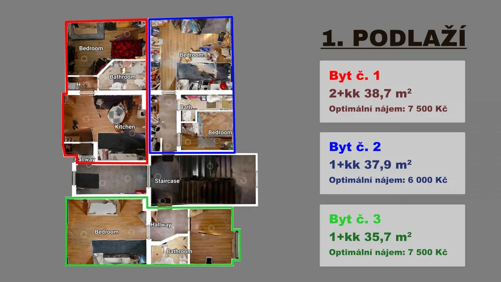 Byt 1 2+kk 38,7 4 500 Kč 6 200 Kč 7 500 Kč