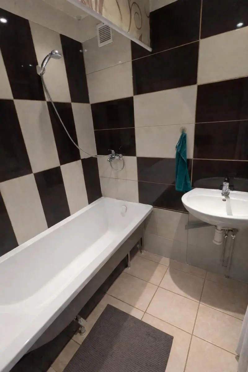 Kuchyň je vybavena hezkou kuchyňskou linkou a plynovými kamny s digestoří. V koupelně je vana s umyvadlem, WC odděleno.. Celá koupelna je obložena moderními obklady. Z pokoje je přístup na balkón, ze kterého je výhled na základní školu.