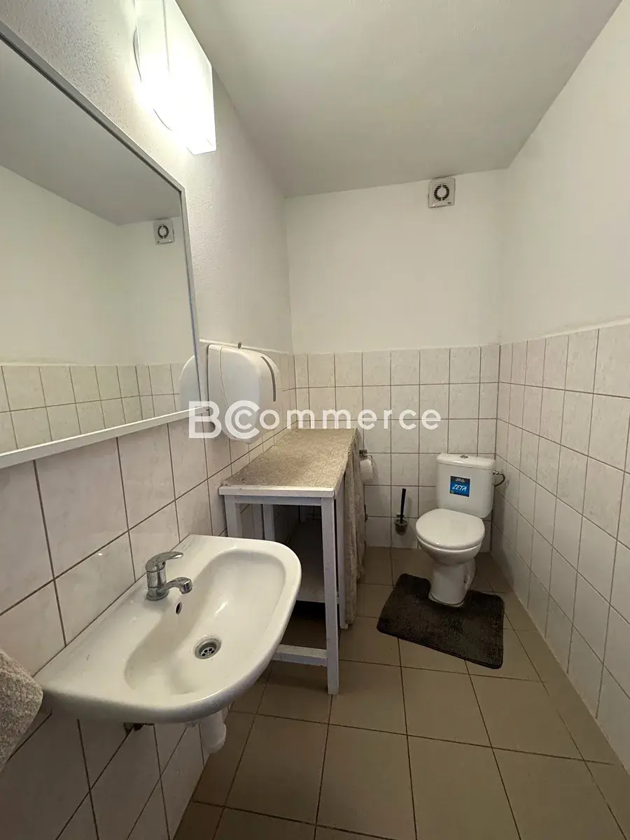 Nabízíme k pronájmu samostatný moderní dvoupodlažní kancelářský objekt s parkováním přímo u objektu. V přízemí o velikosti 77m2 se nachází velká klimatizovaná kancelář, která je vzhledem k umístění přímo u vchodu vhodná jako showroom, jednací místnost apod. Kancelář má přípravu na kuchyňku, v přízemí jsou dále umístěny wc a sprchy.