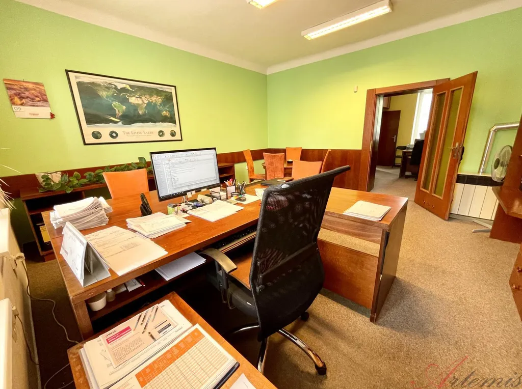 K celopodsklepenému domu s třemi nadzemními podlažími o výměře 321m2 a zastavěné ploše 136m2 náleží udržovaná zahrada o výměře 188m2. Bytové jednotky o dispozici 3+1 slouží jako kanceláře a disponují komorou, sociálním zařízením a kuchyňkou. Druhé nadzemní podlaží má nad rámec balkon s výhledem do zahrady, třetí podlaží navíc dvě další místnosti, sloužící coby sklad archiválií. Vytápění zajišťují plynová topidla Gamat a plynový kotel, v podkroví je instalována klimatizace. Pro každé patro je samostatný elektroměr a plynoměr. Rozvody v domě jsou: elektřina - částečně měď, plyn - převážně měď, voda - plastové / ocelové trubky, vnitřní odpadní trubky - převážně plast.