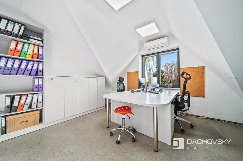 Nabízíme jedinečnou investiční příležitost – plně funkční administrativní areál využívaný jako firemní sídlo, nacházející se v klidné části města Pardubice - Nové Jesenčany. Areál je situován na oploceném pozemku o celkové výměře 1 014 m². Administrativní komplex vznikl rekonstrukcí původního domu a moderní architektonickou přístavbou, které společně vytvářejí funkční celek ve tvaru písmene L. Kombinace tradičních materiálů, jako je dřevo a omítka, spolu se současnými technologiemi dodává budově reprezentativní charakter.