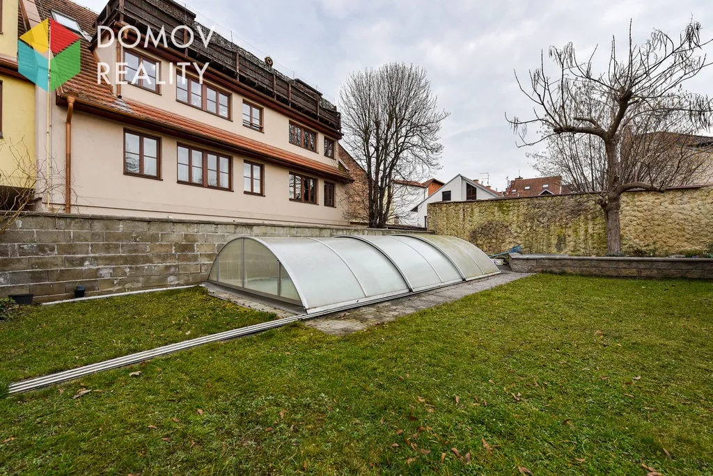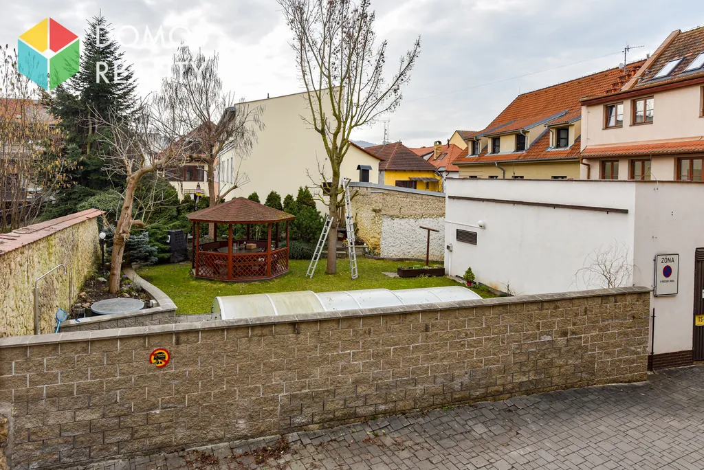 Příjemným benefitem této nemovitosti je možnost užívání společné zahrady s altánkem a bazénem.