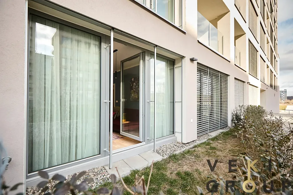 byt 2+kk 59,2 m2 a zahrádkou o velikosti 8 m2, v novem rezidenčním projektu Port Karolina, v ulici Breitfeldova 709/17, Praha 8 - Karlín, 186 00, v 1. patře budovy