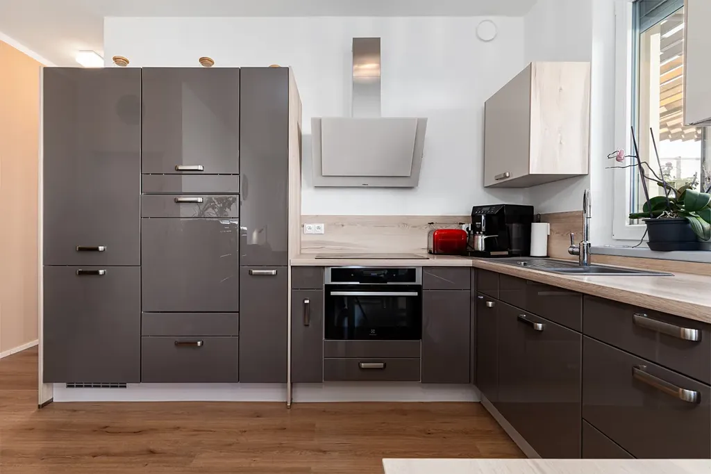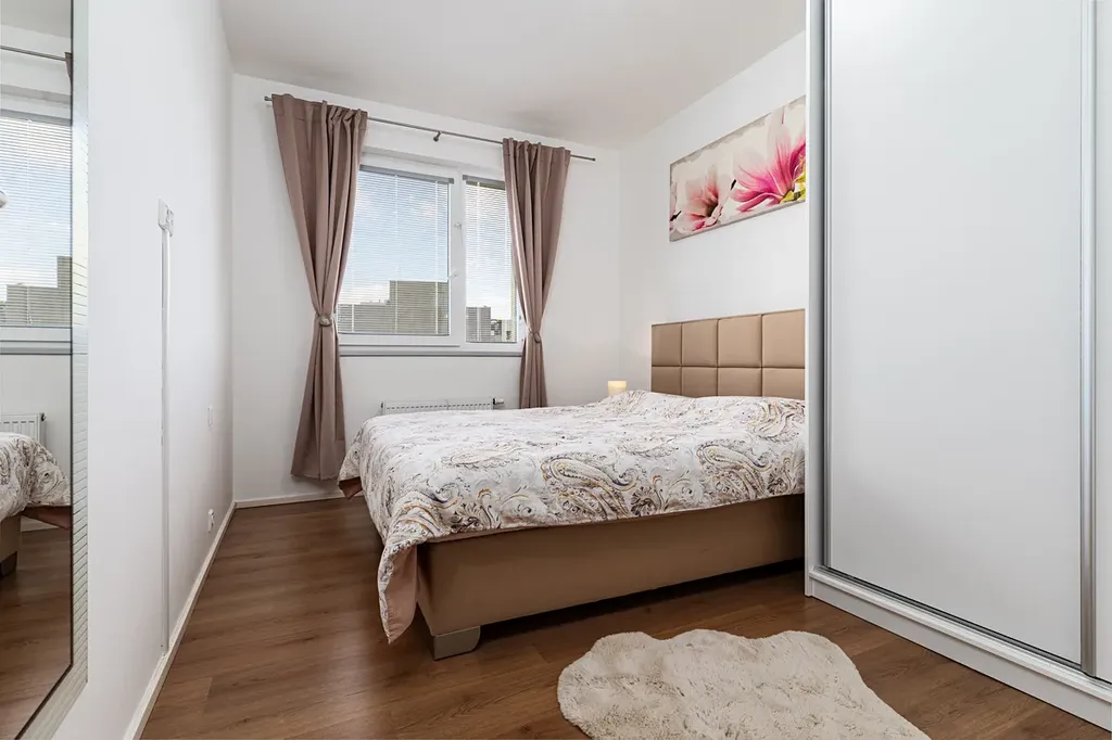 Byt je vybaven klimatizační jednotkou a luxusní německou kuchyňskou linkou vyrobenou na míru, doplněnou kvalitní pracovní deskou a vestavěnými spotřebiči značky Electrolux.