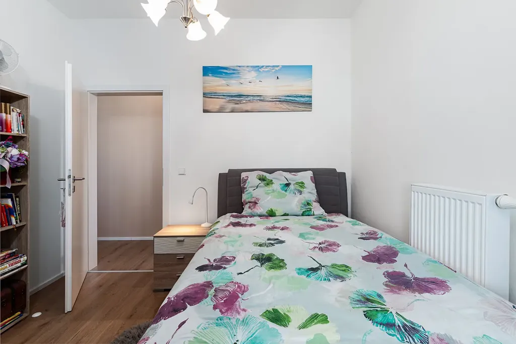 Dispozice bytu je navržena tak, že z prostorné předsíně je přímý vstup do všech obytných místností.