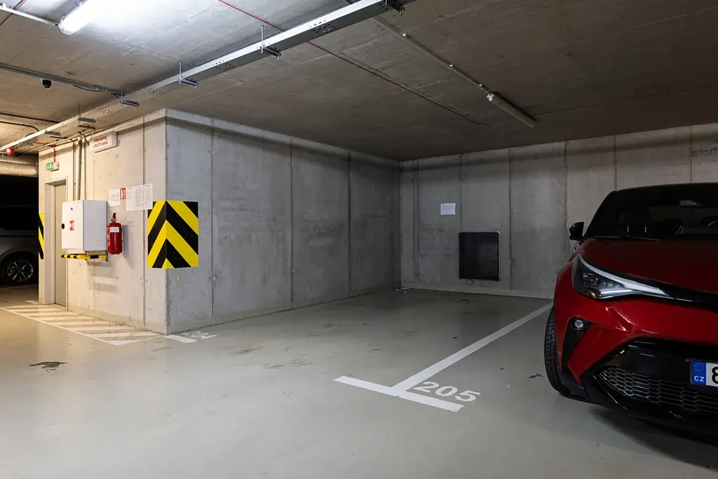 V případě zájmu je možnost koupit kryté garážové stání, které se nachází ve druhém podzemním podlaží domu. Cena garážového stání je 500.000,-Kč.