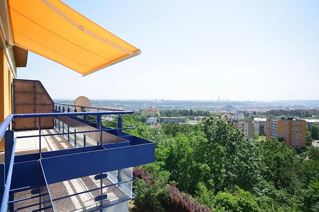 Jeden z mála bytů, ze kterého budete mít celé město jako na dlani, neboť dům je umístěn na kopci a terasa obepínající celý byt poskytuje výhled od východu na západ.