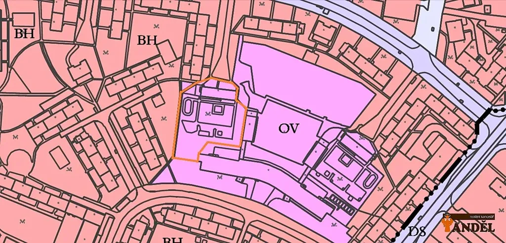 Dle územního plánu je pozemek určen pro občanskou vybavenost (OV) např. školství, zdravotnické nebo sociální služby, administrativu, obchod do 800 m and sup2; nebo sportovní zařízení.