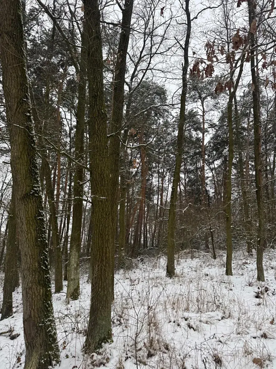Na pozemku jsou ze 2/3 borovice a z 1/3 listnaté stromy (duby).