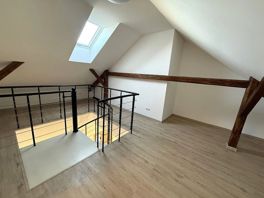 Interiéru dodávají jedinečný charakter přiznané dřevěné trámy v horním patře, které v kombinaci s dostatkem světla vytváří útulnou a zároveň reprezentativní atmosféru.