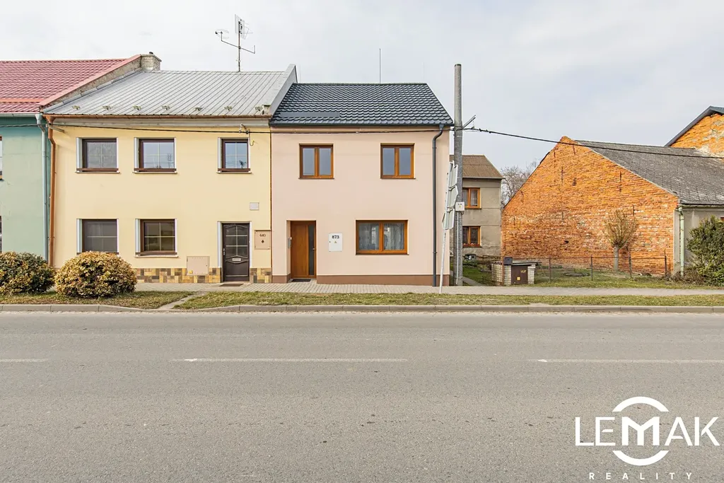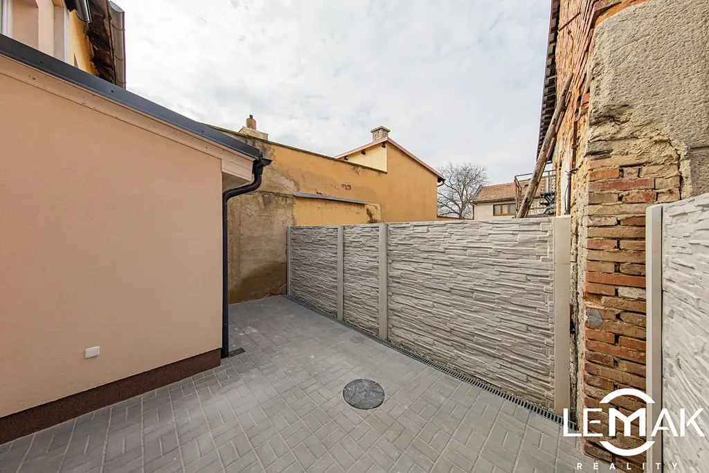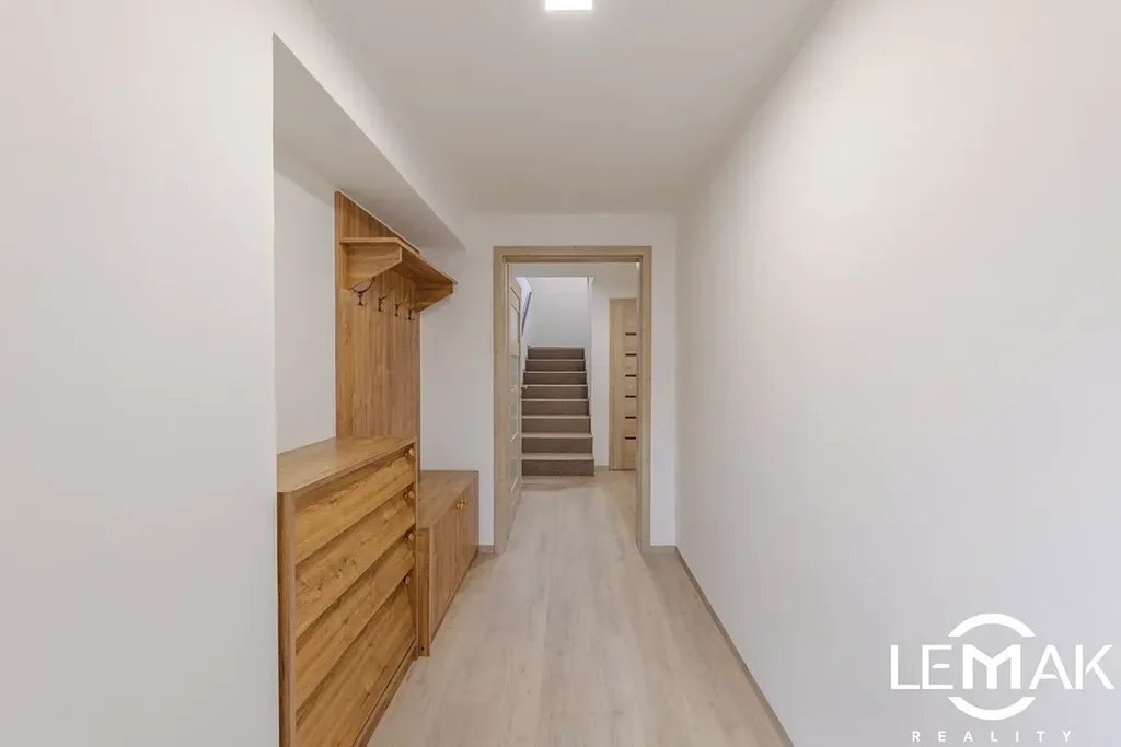 Dům je dvoupodlažní a dispozičně velmi dobře řešen. V prvním podlaží nalezneme vstupní chodbu, samostatné WC, schodiště a prostorný obývací pokoj s kuchyňským koutem. Kuchyňská linka je vyrobena na míru a je vybavena spotřebiči. Z obývacího pokoje je přímý vstup na dvorek/terasu o velikosti 20 m², která nabízí příjemné soukromí pro posezení či relaxaci. V obývacím pokoji je instalována klimatizace. Z dvorku je dále vstup do technické místnosti, kde se nachází elektrický kotel a bojler.