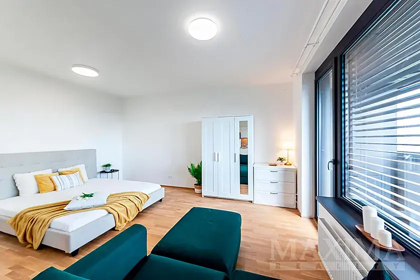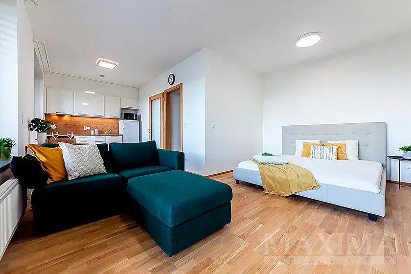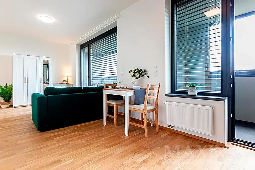 - obytný prostor s kuchyňským koutem a přímým vstupem na balkon