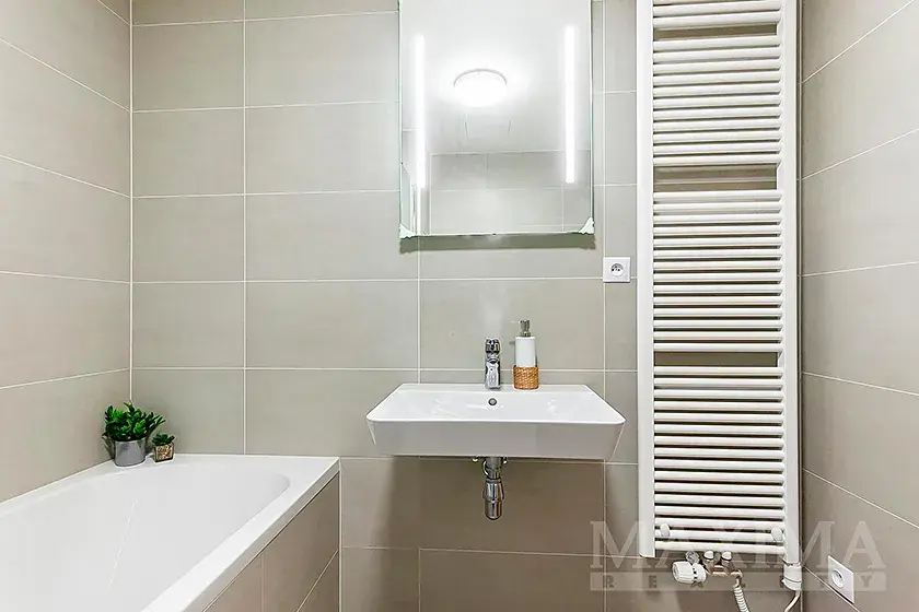 - kvalitní koupelna s velkoformátovou dlažbou